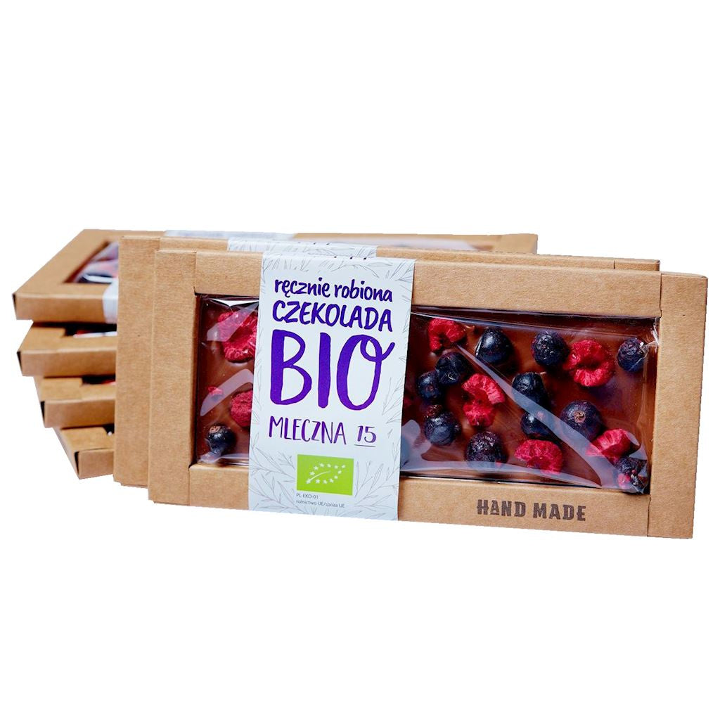 Czekolada mleczna z czarnymi porzeczkami i malinami bio 53 g