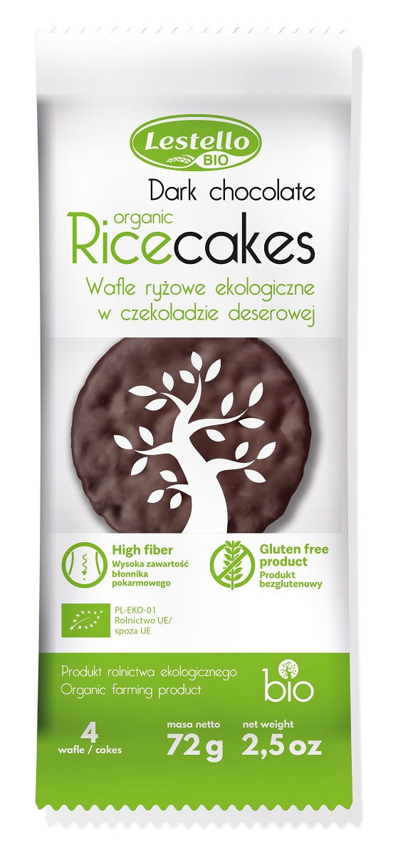 WAFLE RYŻOWE W CZEKOLADZIE DESEROWEJ BEZGLUTENOWE BIO 72 g - LESTELLO